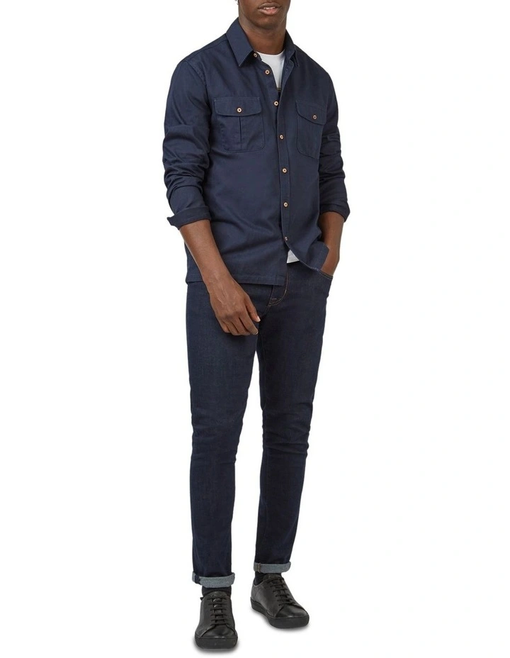 This Ben Sherman cotton twill long sleeve shirt comes in an overshirt fit and features a casual point collar.