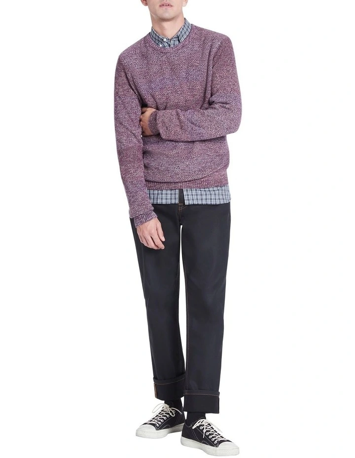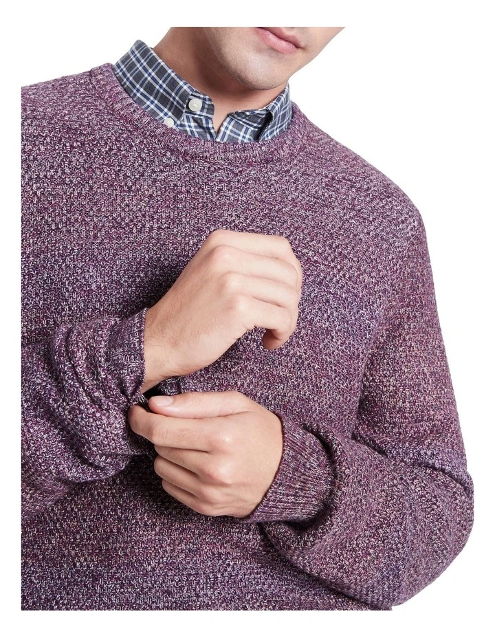 Showing off a chunky textured knit, this long sleeve sweater reveals a mottled purple hue, made from enticingly soft yarn. Offering a regular fit through the body, the sweater works as an effortless layering piece, finished with solid rib trim detailing at the neat crew neckline, sleeve cuffs and straight body hem.