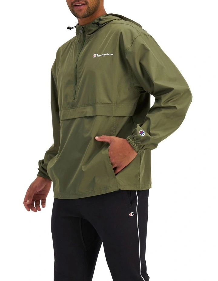 Our Packable 1/4 Zip Jacket is made from lightweight and wind resistant polyester. Featuring a sckuba collar with hood, this jacket with loose fitting hem and adjustable shock cords can be packed into the front pocket for easy packing.