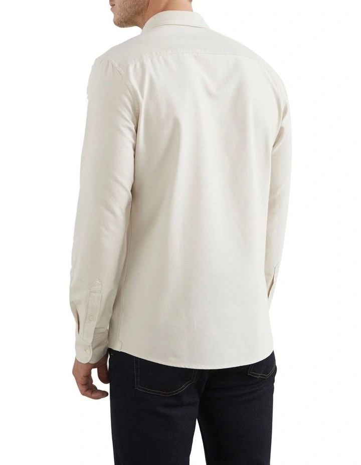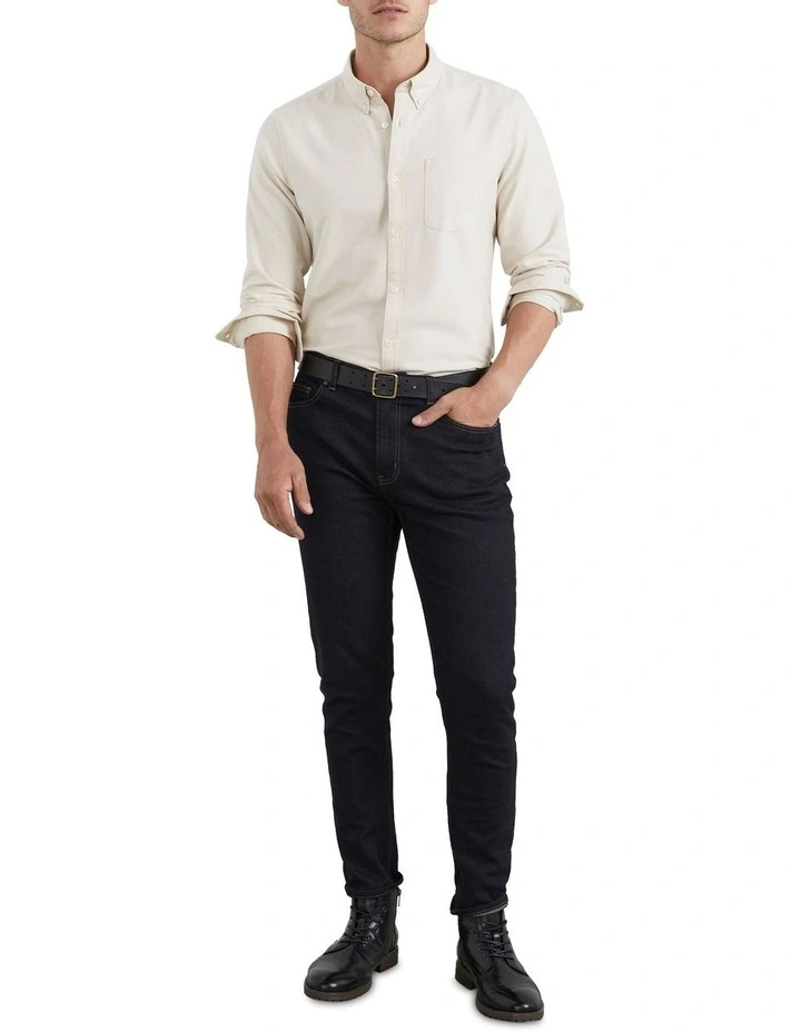 Add the Oxford Slim Fit Shirt to your wardrobe. Made from 100% cotton, this shirt has a slim fit, curved hemline, and single chest pocket. Wear with our slim chino pant and crew neck tee.