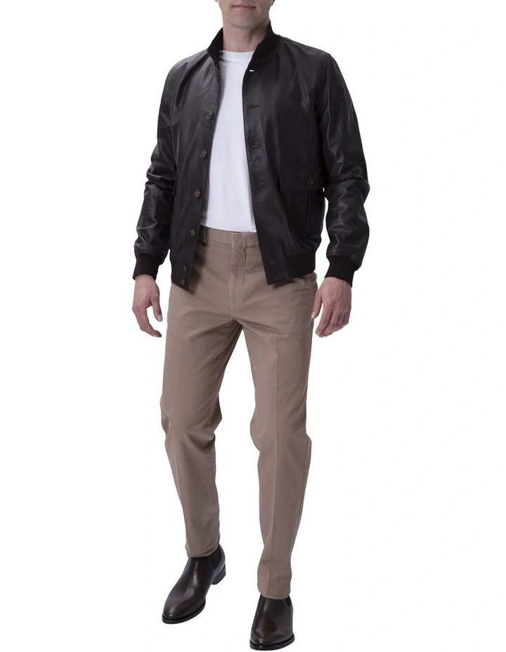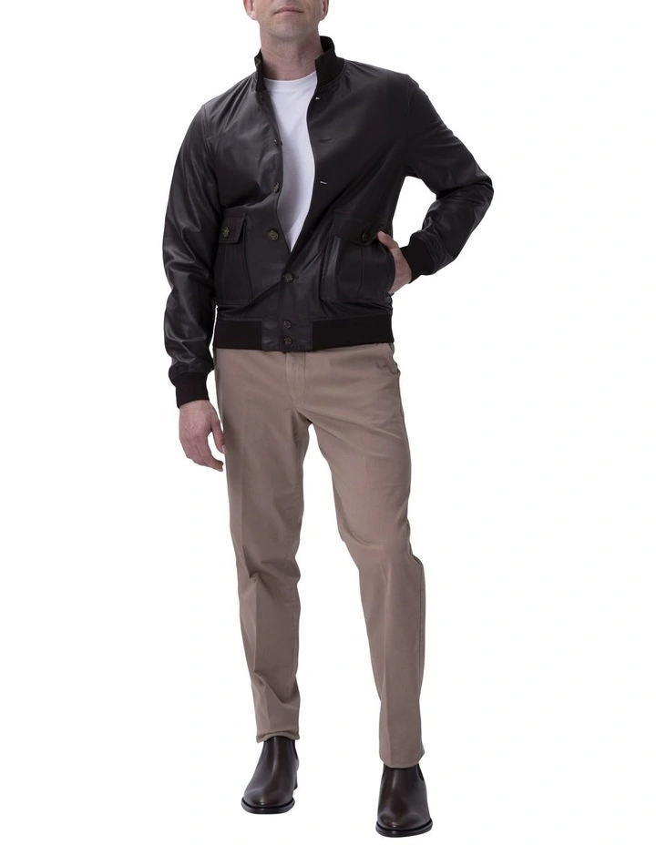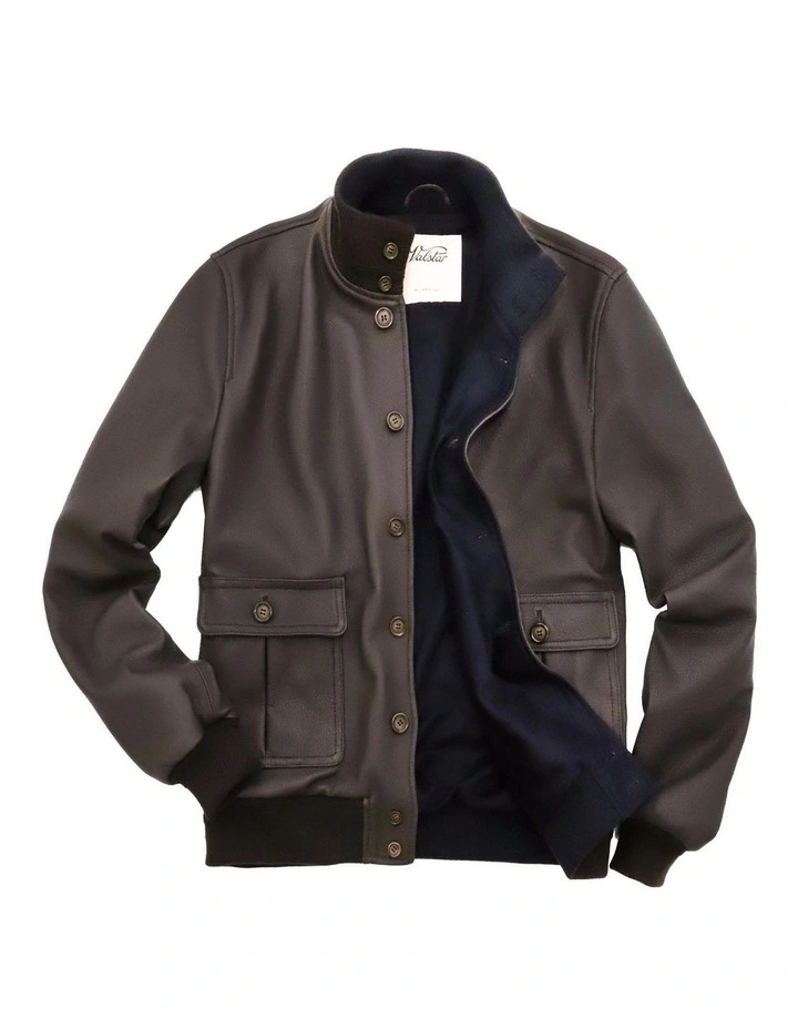 This Valstarino jacket by Valstar is made up of butter-soft cow Nappa leather and finished with a ribbed collar, cuffs, and hems. The Valstarino can be worn with cashmere rollneck, woolen chinos, and Chelsea boots.