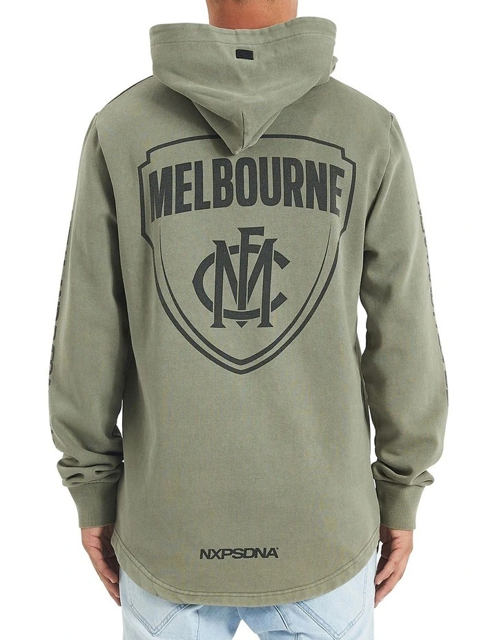 Show your loyalty and flaunt your team pride with the Melbourne Demons Curved Hem Hoodie in Pigment Khaki. This remarkable piece of clothing is part of Nena & Pasadenas official AFL apparel collection, which represents the next stage of evolution by merging streetwear sensibilities with classic sports vibes, creating the ultimate supporter wear.Â