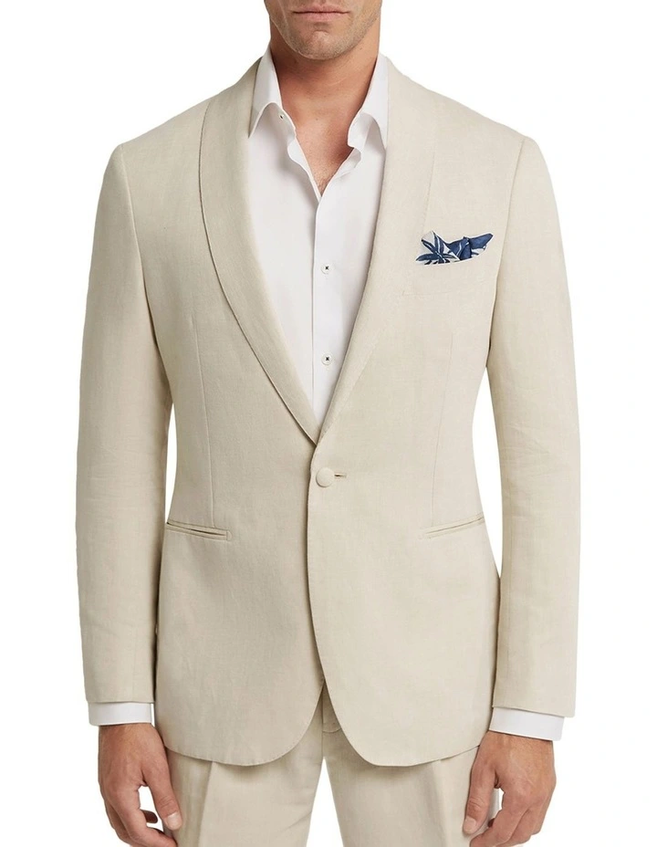 Made in Italy, the Robertson Tuxedo Jacket is crafted from a luxurious Italian cotton-linen blend. It is lightweight and breathable making it an easy formal jacket to wear and travel with during the warmer seasons.