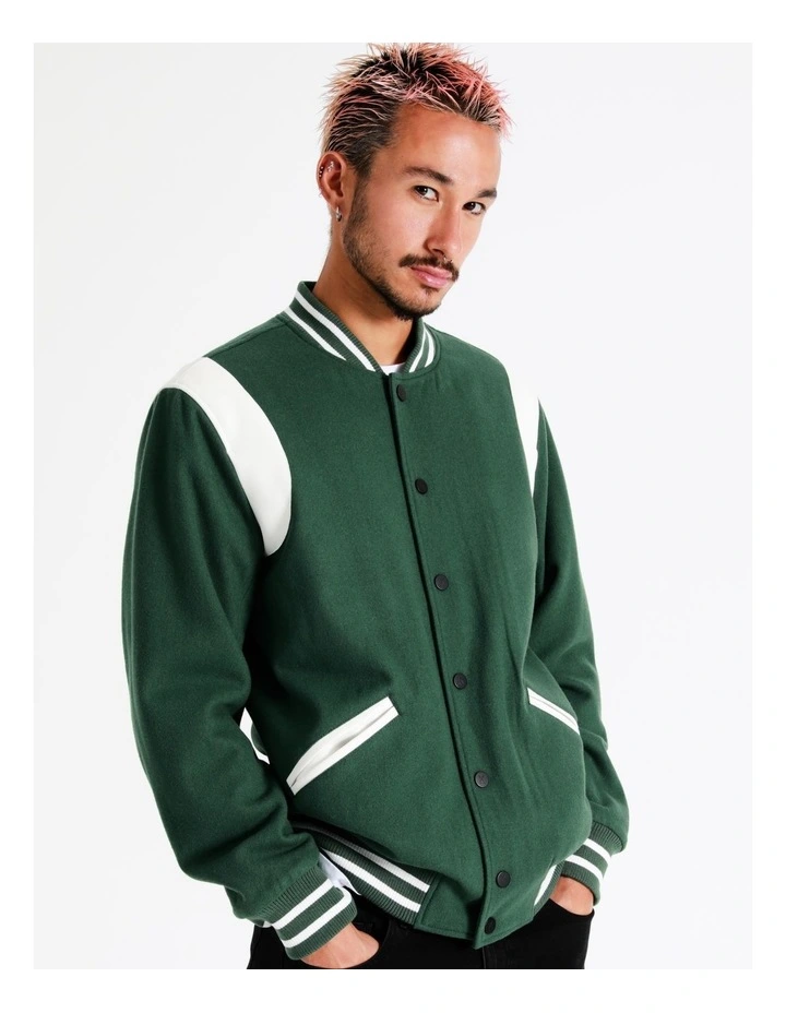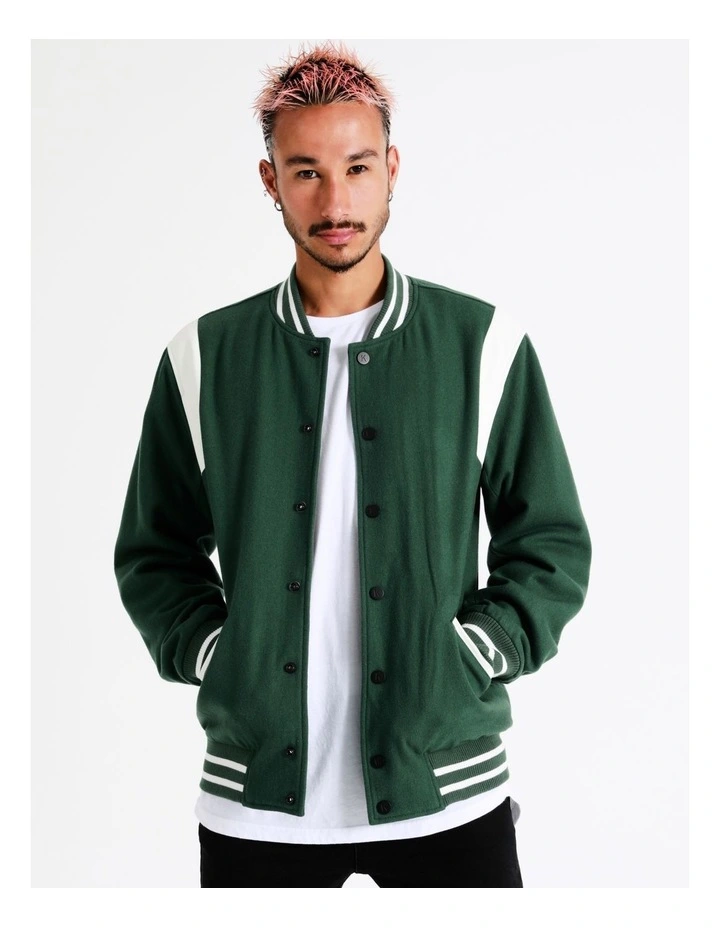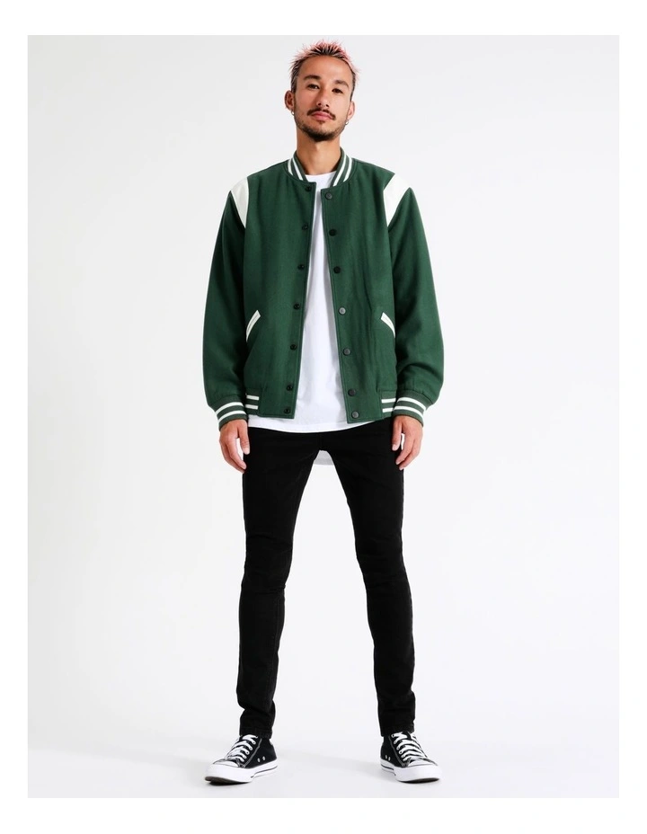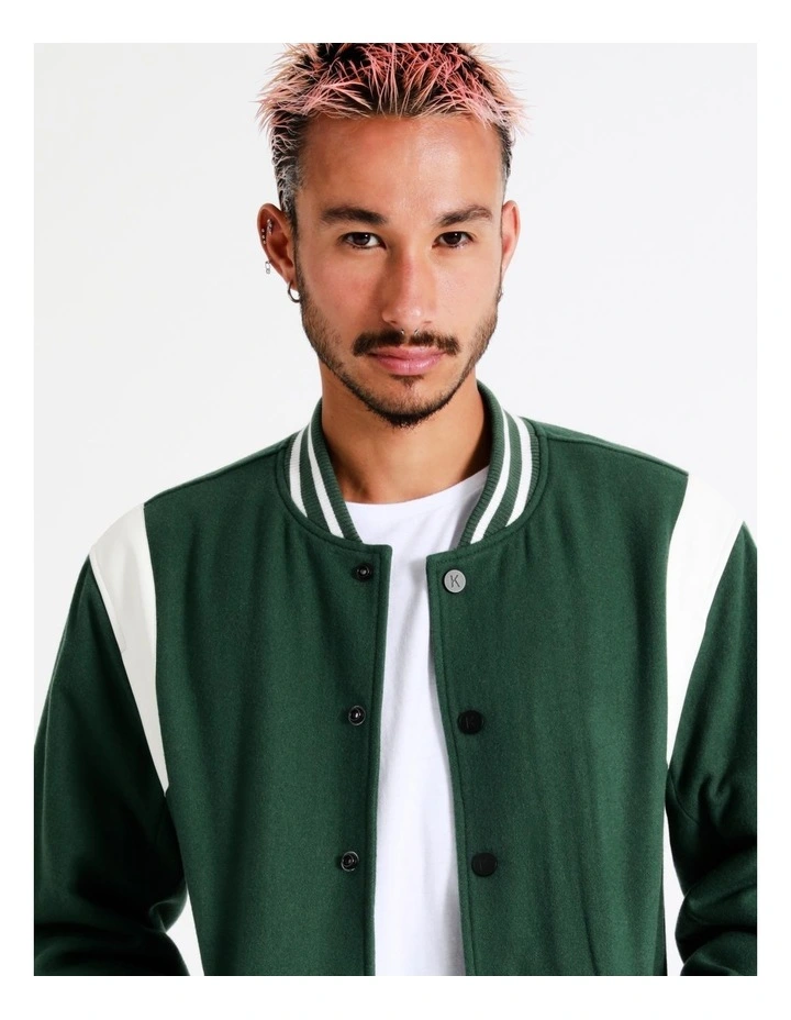 For stylish fits that enhance your style, Kenji has you covered. This varsity jacket features a button up front and functional side pockets. Easy to pair with your best denim and go.