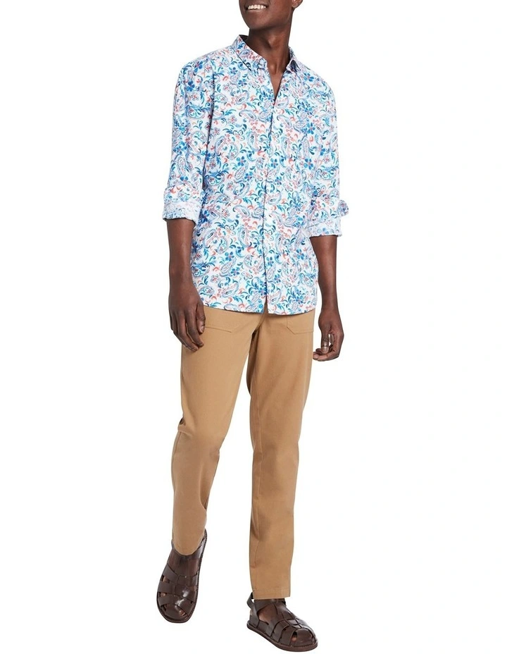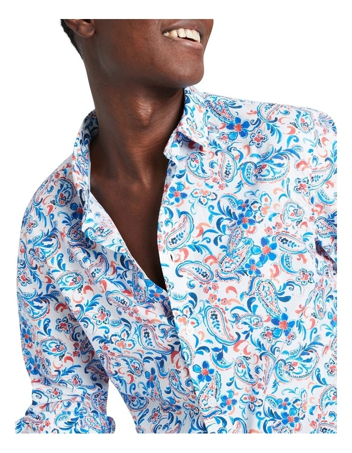 Flattering within a slim fit, this long sleeve shirt feels lightweight and breathable against the skin, made from pure, soft cotton. Drawing the eye with its vibrant paisley print, the shirt continues to appeal with white pearlescent buttons at the classic front button closure and neat button-up cuffs, and is completed by a sharp shirt collar and curved shaping at the hem.